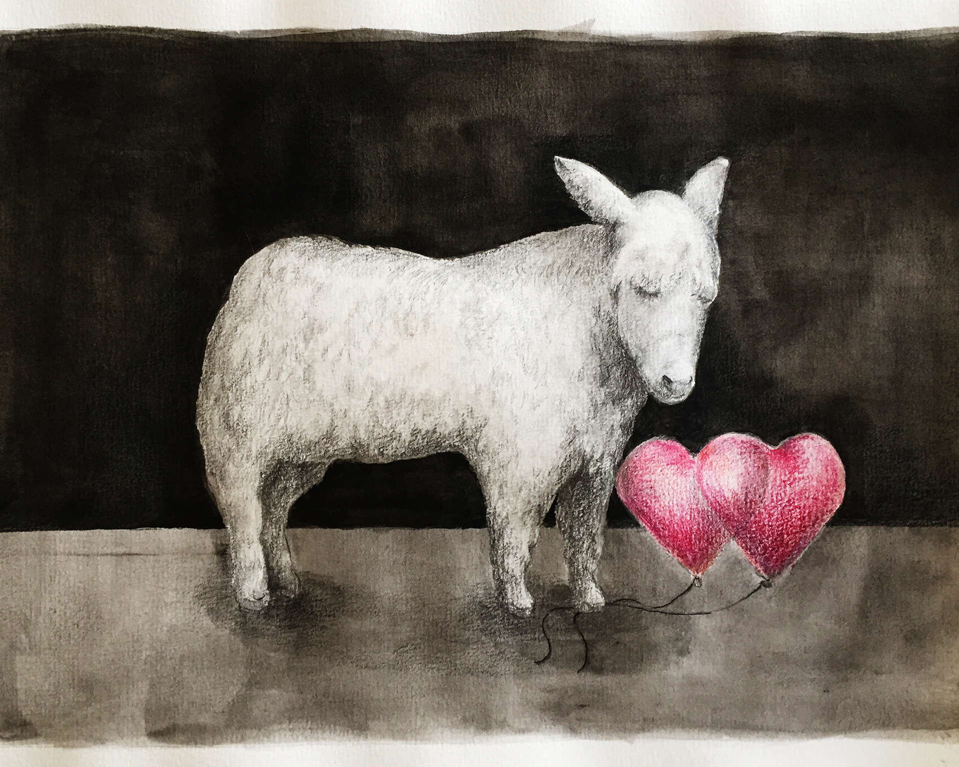 Amour, cœur, âne 21 X 30 cm paper, pencil, colour pencil, ink